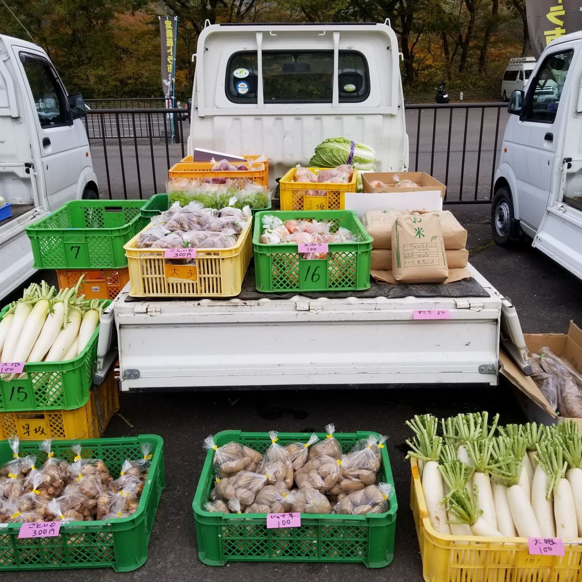 軽トラの荷台で収穫祭!