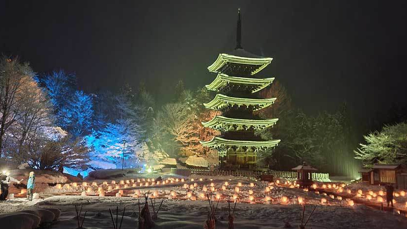 2月8日(土)、17時~19時、雪灯籠まつりと五重塔のライトアップを開催します。