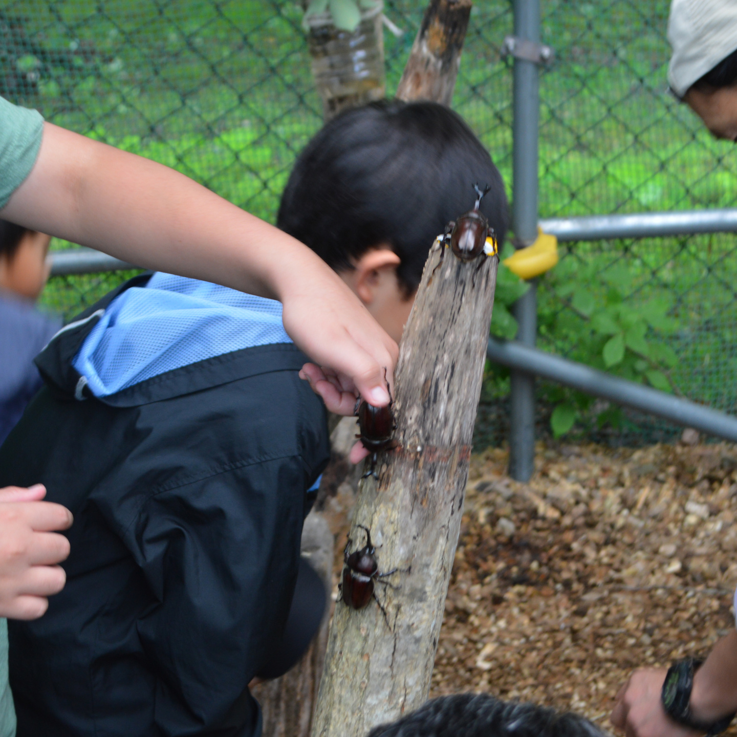 又、観察小屋の脇には自然の林もあり、探検をしながらカブトムシを見つけることも出来ます。