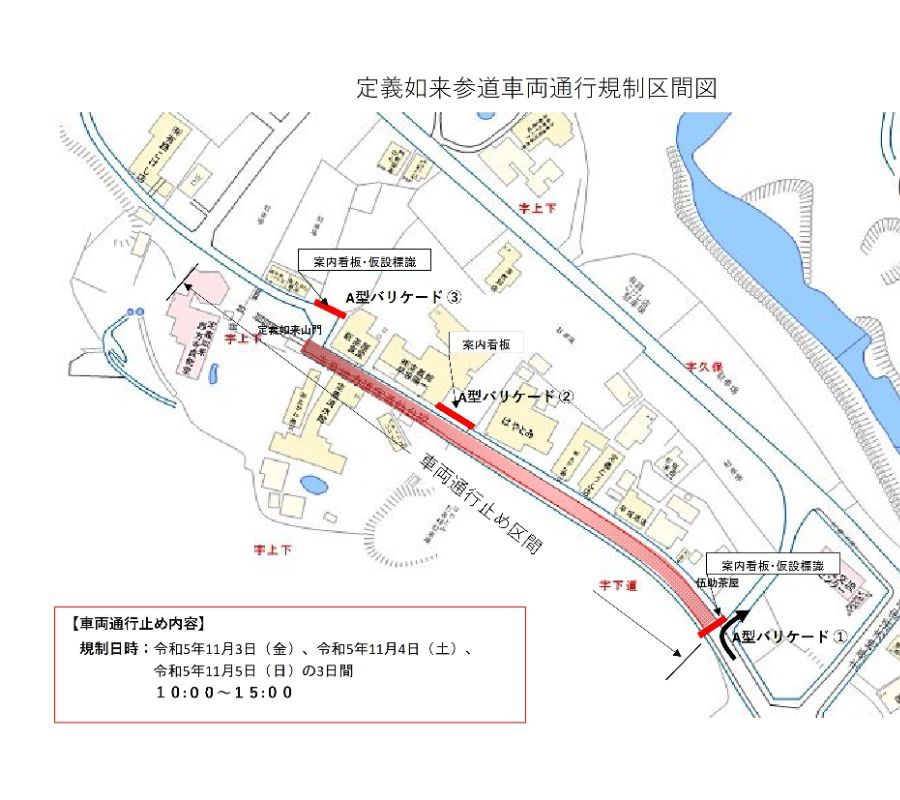 大倉四季探検、秋のイベントとして「定義歩行者天国」を開催し、門前参道を歩行者専用として開放します。
